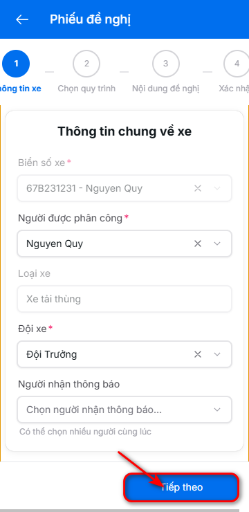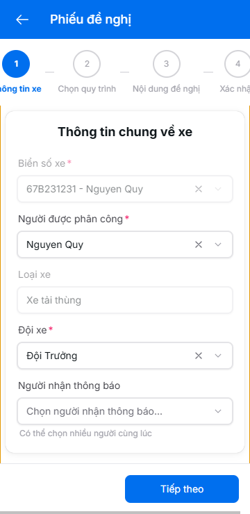 3. Nhập thông tin người phân công và đội xe