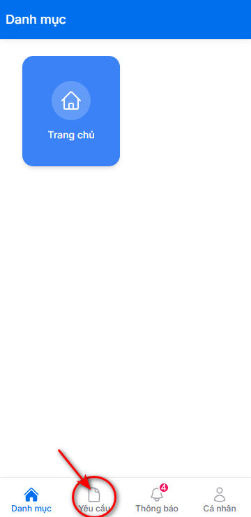1. Tài xế ấn vào nút yêu cầu để mở trang danh sách yêu cầu
