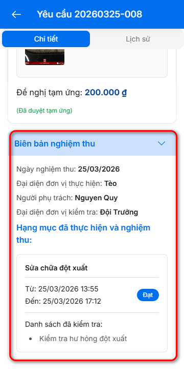 - Sau khi nhận được thông báo về việc hoàn thành sửa chữa