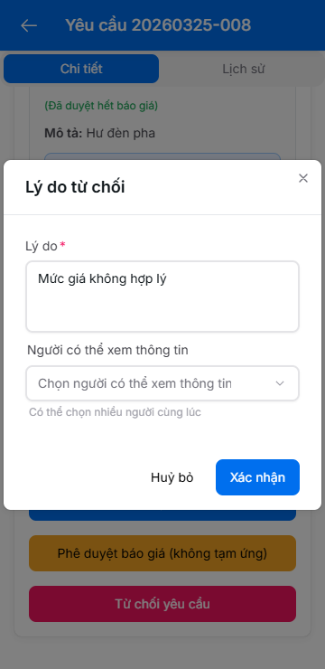 Người phụ trách sau đó sẽ phê duyệt báo giá. Khi đó: