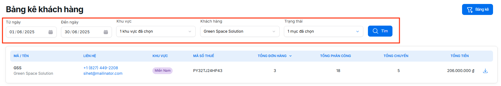- Lọc khách hàng: Lọc theo khoảng thời gian, khu vực, khách hàng hoặc trạng thái.