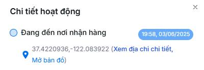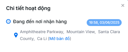 - Cửa sổ này hiển thị các mốc thời gian và trạng thái cập nhật gần nhất của chuyến hàng. Tại đây, bạn có thể xem vị trí của hoạt động đó.