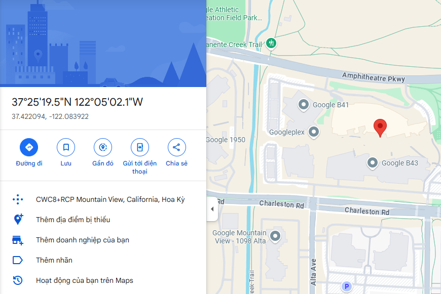 Để xem vị trí trực quan, nhấp vào liên kết Mở bản đồ.
