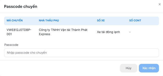 4.2. Gửi passcode cho chuyến hàng