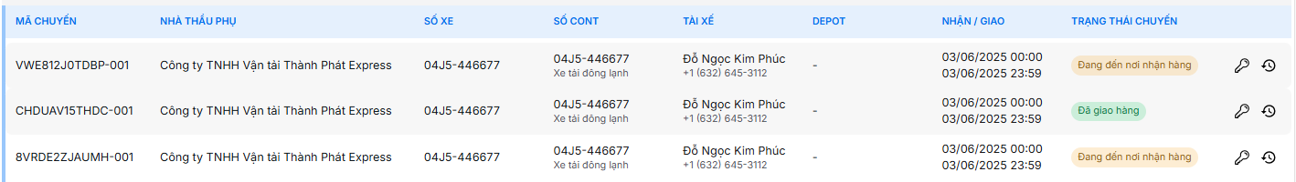 Bước 3: Xem thông tin chi tiết các chuyến hàng