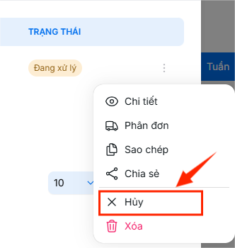 4. Thao tác hủy đơn hàng