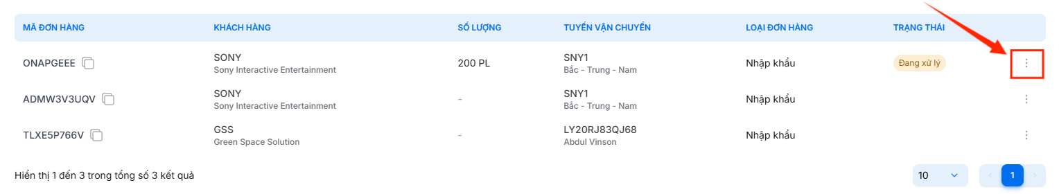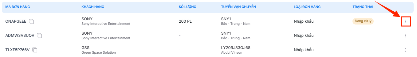 - Nhấp vào biểu tượng ba chấm trong dòng đơn hàng để mở menu thao tác.