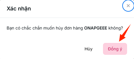 - Hộp thoại xác nhận xuất hiện, nhấn Đồng ý để huỷ đơn hàng hoặc Huỷ để thoát.
