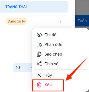 - Nhấp biểu tượng ba chấm trong dòng đơn hàng muốn xóa để mở menu thao tác.