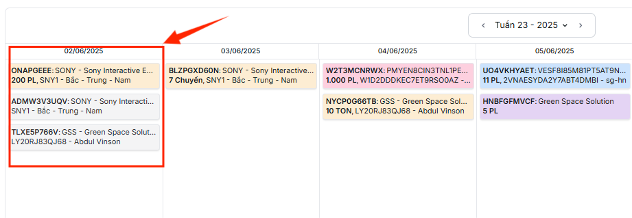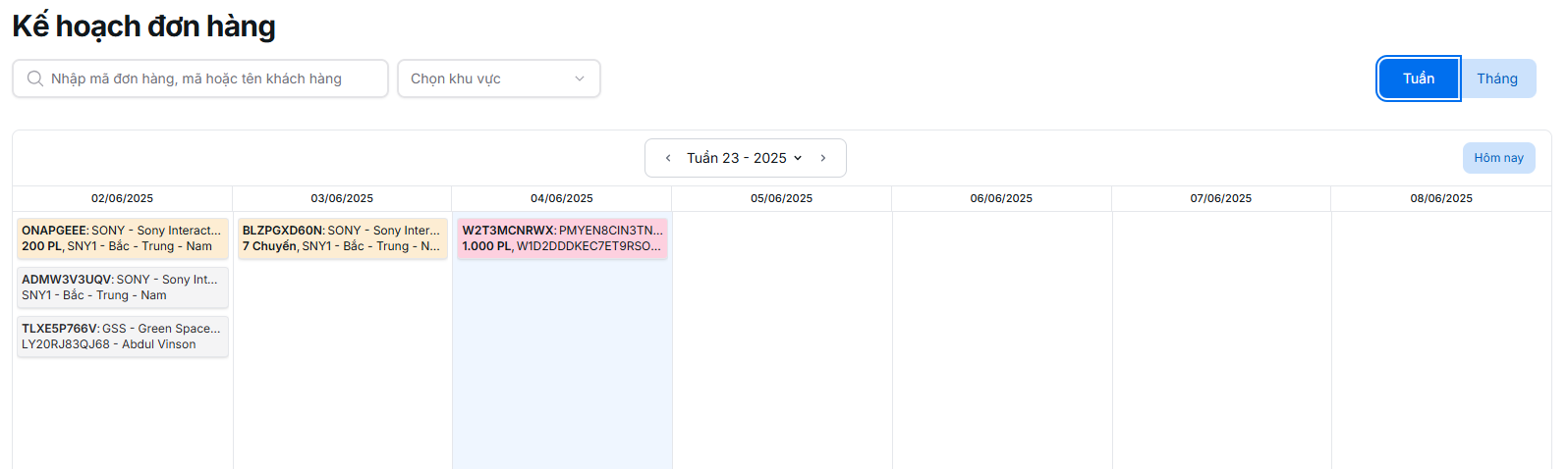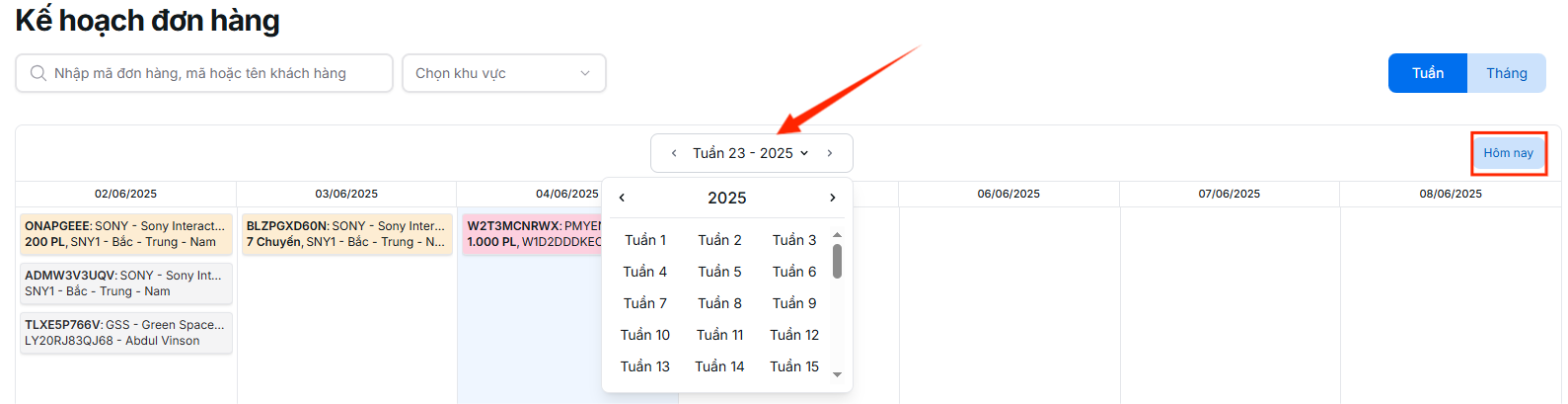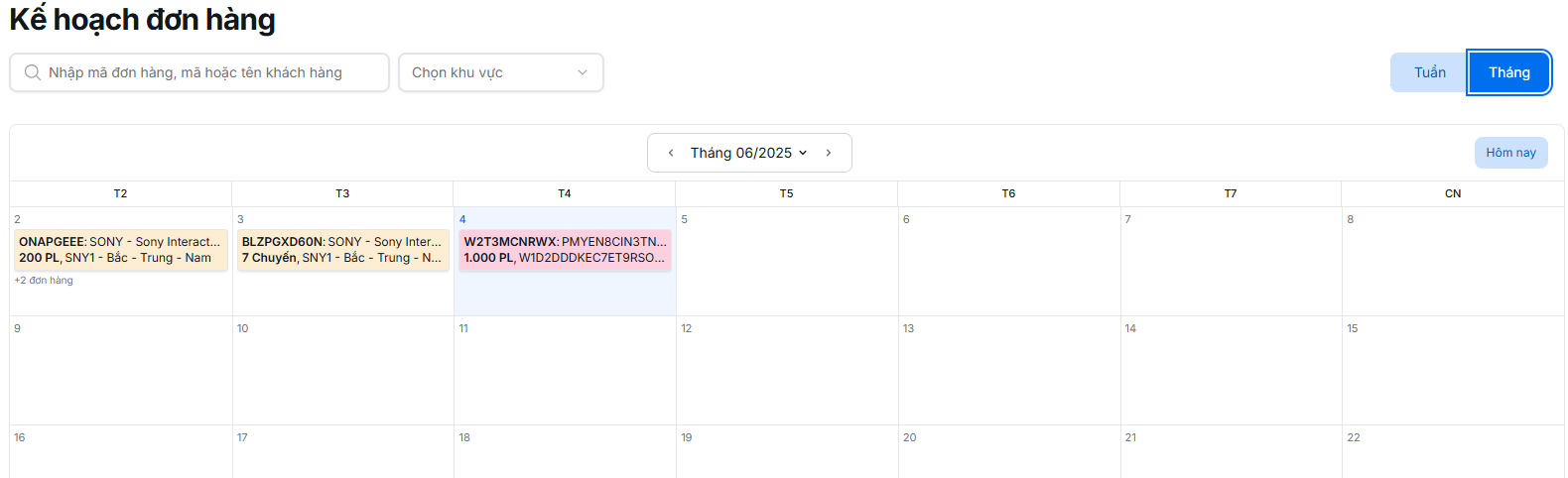 Bạn có thể chuyển đổi giữa chế độ xem theo tuần hoặc theo tháng để theo dõi kế hoạch giao hàng.