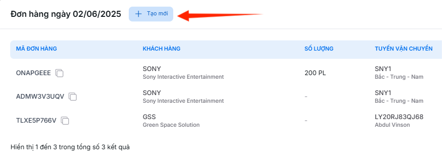 Nhấn nút Tạo mới ở phía trên danh sách để thêm đơn hàng mới vào ngày đã chọn.