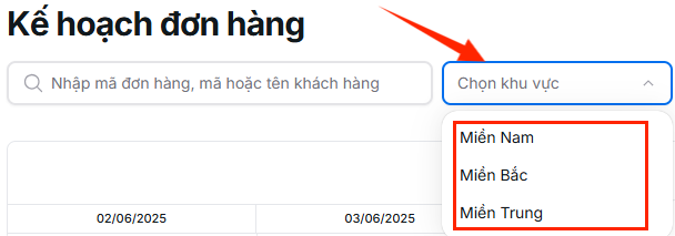Chọn khu vực địa lý để thu hẹp danh sách đơn hàng cần xem.