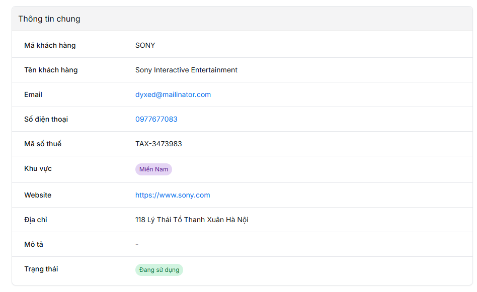 Trang này hiển thị đầy đủ thông tin chi tiết của một khách hàng cụ thể.