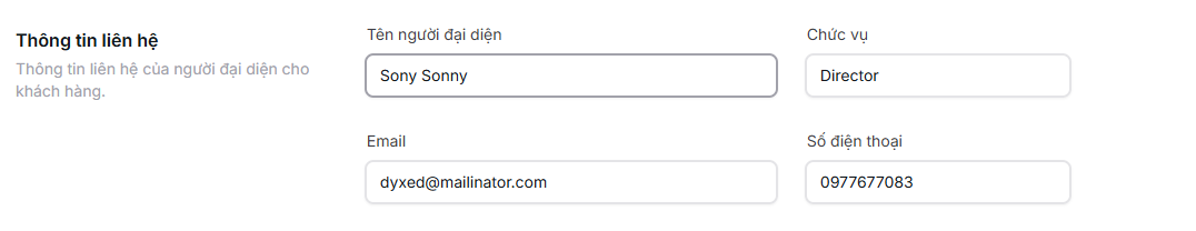 - Email / Số điện thoại: Thông tin liên hệ chính.