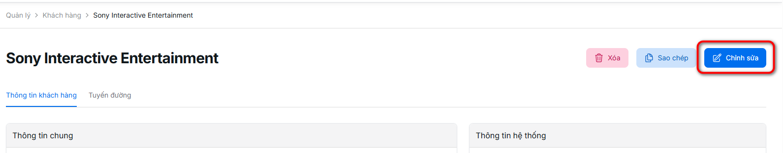 - Hoặc nhấp vào tên khách hàng để di chuyển đến màn hình chi tiết khách hàng → Nhấn nút Chỉnh sửa ở góc trên cùng bên phải.