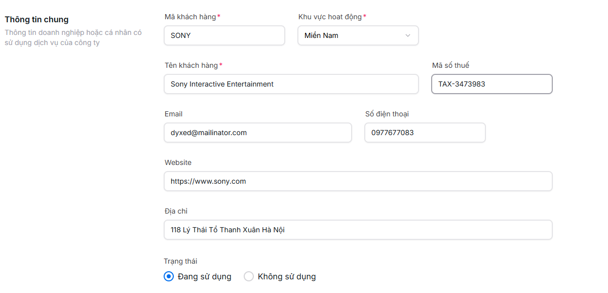 - Tên khách hàng (*): Tên doanh nghiệp hoặc đơn vị.