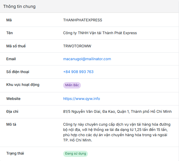 Trang này hướng dẫn cách xem thông tin chi tiết của một nhà thầu phụ cụ thể trong hệ thống.