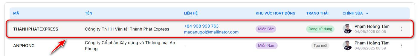 - Nhấp chuột trực tiếp vào Tên của nhà thầu phụ đó trong danh sách.
