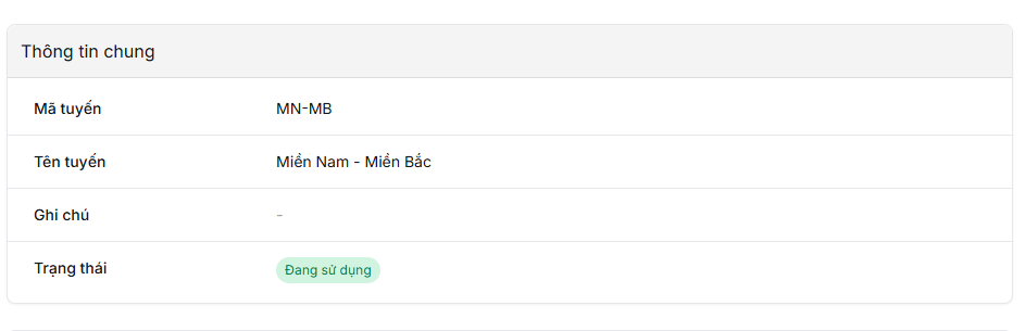 - Mã tuyến: Định danh tuyến (ví dụ: