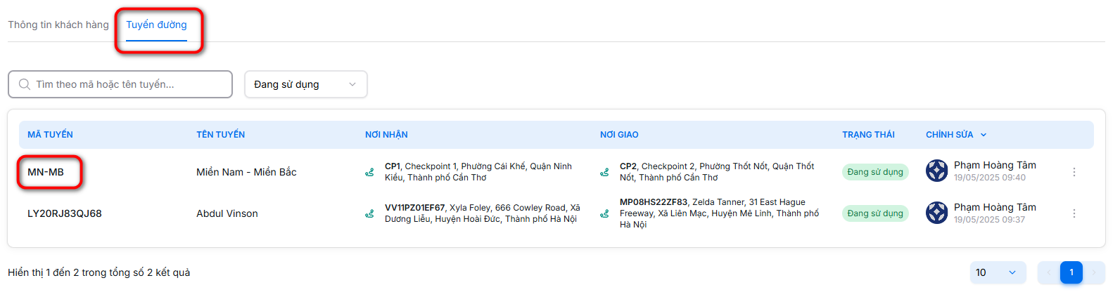 - Mỗi tuyến đường thuộc về một khách hàng cụ thể và chỉ xem được khi truy cập từ màn hình chi tiết khách hàng.