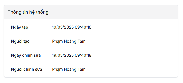 - Người tạo: Tên người tạo
