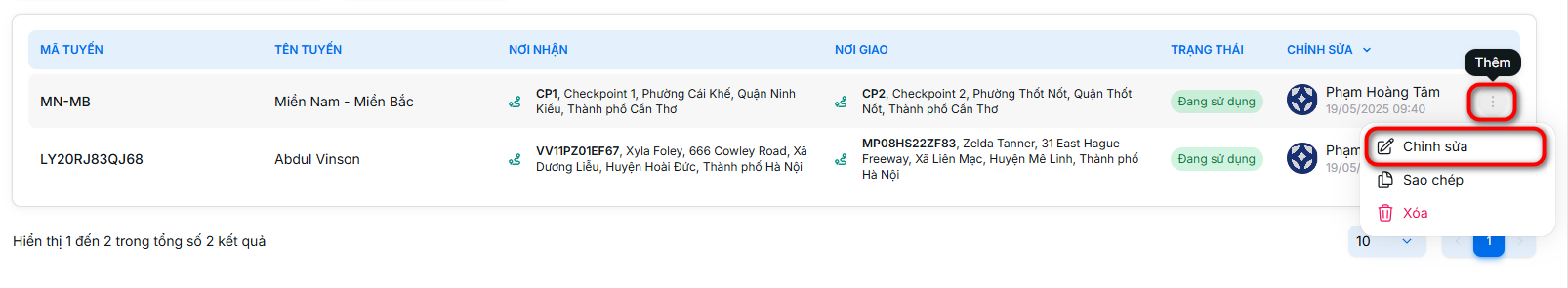 - Nhấn vào dấu ba chấm dọc (⋮) của tuyến muốn chọn → chọn Chỉnh sửa
