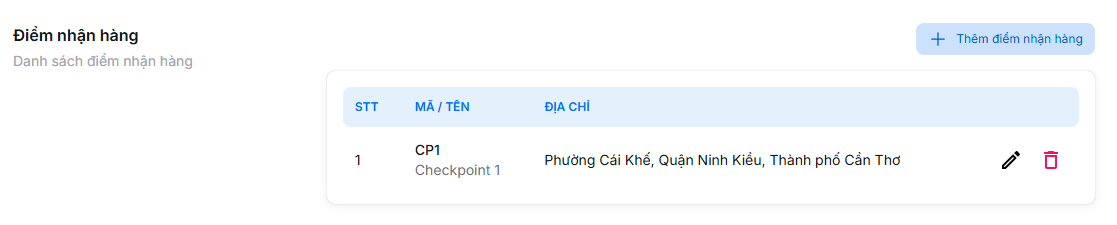 - Giao diện tương tự như sửa điểm nhận hàng nhưng trống dữ liệu.